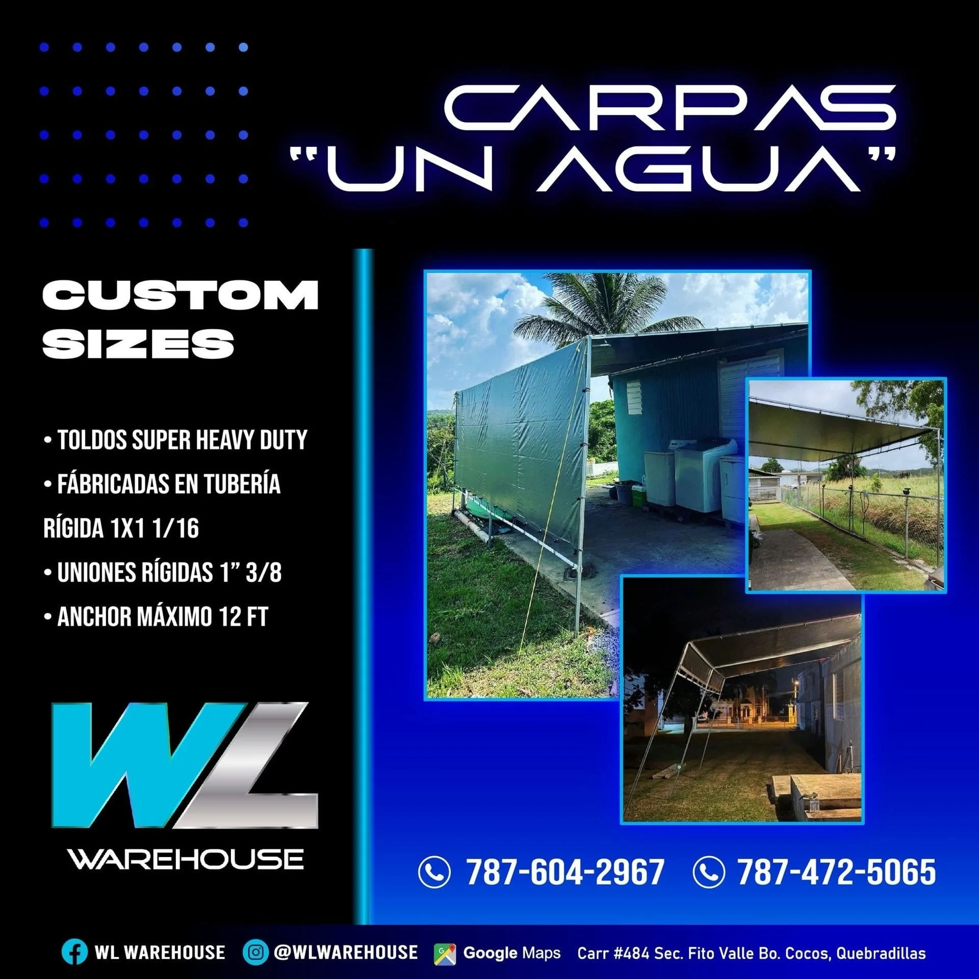 En WL Warehouse somos un negocio especializado en la venta de carpas y accesorios de la mejor calidad, con el propósito de ofrecer a nuestros clientes una carpa duradera. Vendemos herramientas de todo tipo a precios módicos, desde herramientas pequeñas hasta herramientas especializadas. Este negocio nace de la necesidad que hubo luego del paso del Huracán María por el uso de carpas o toldos para cubrir los techos destruidos de nuestra comunidad.